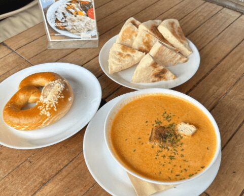 今回は오늘의수프(本日のスープ)・슈니첼 하와이(シュニッツェルハワイ) 23.5・パンコーナーでピタパン・プレッツェルを注文しました✨