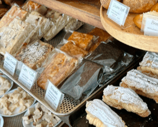 青と白のこぢんまりとしたお店が見えたらそこが「The Bakers Table」です✨